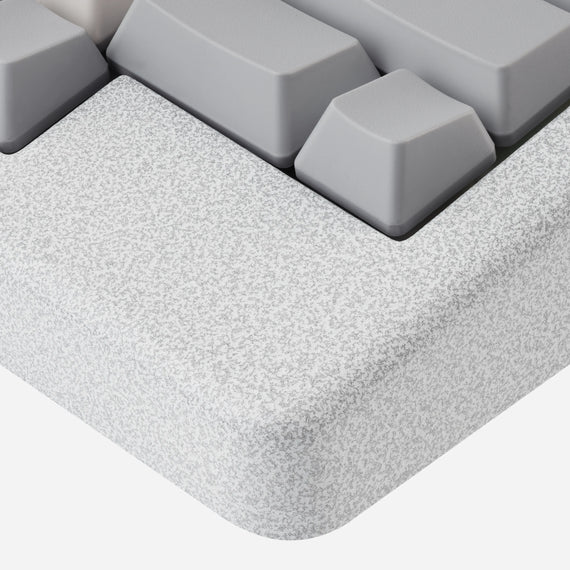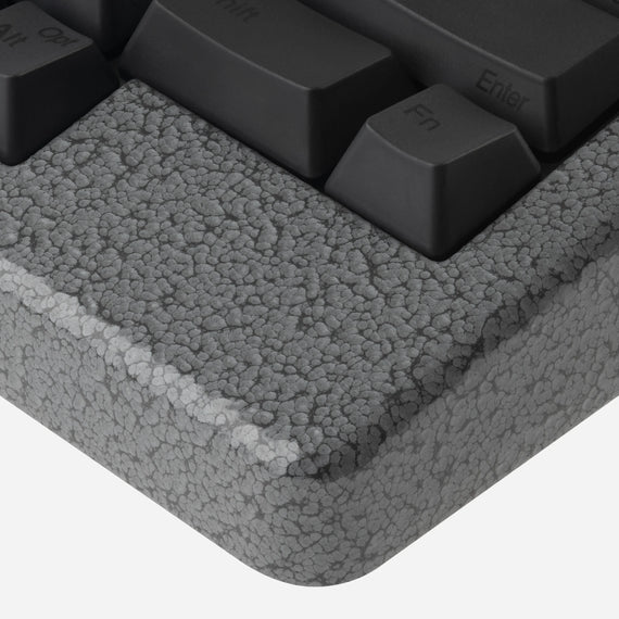 Each Heavy Grail comes with a gasket system die-cut from vibration-dampening Poron. This soft upper gasket forms a full seal around the switch plate, which helps to simulate that soft bouncy feel that is characteristic of the original HHKB's injection-molded housing and limits external sound transmission from the interior chamber of the housing.