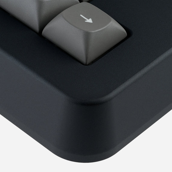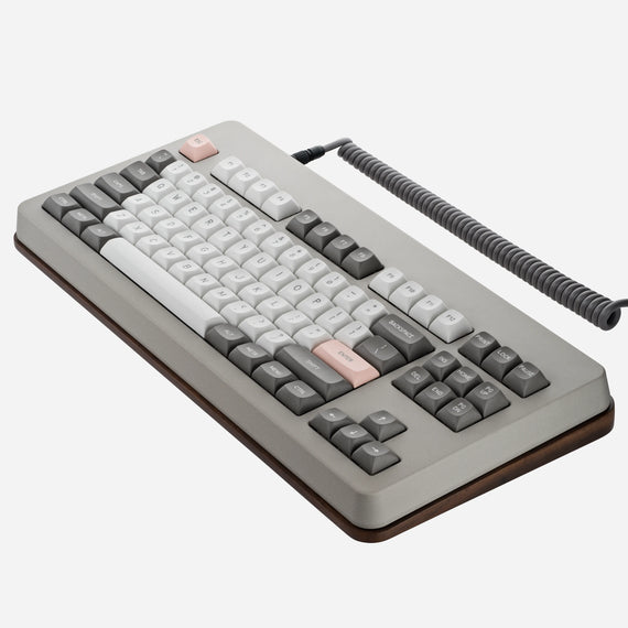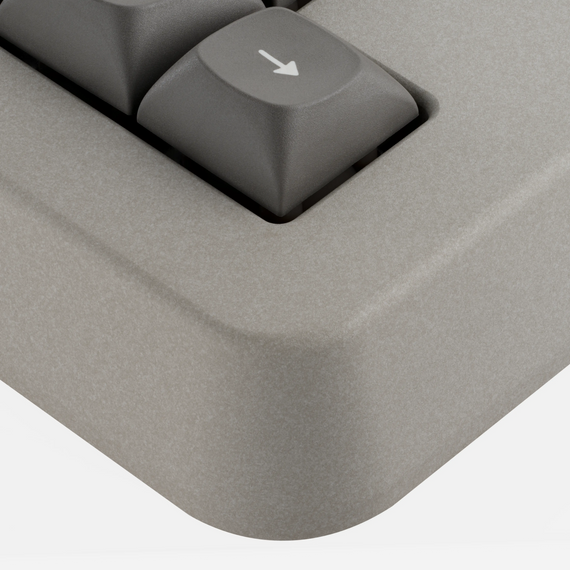 First Edition ships with a special version of the R&D 1973 keycap set, which is designed subtly to evoke the aesthetics of the first personal computers. R&D 1973 is one of the first high-end sets to be produced in double-shot PBT, a material that is relatively challenging to mold but has markedly superior durability and acoustics compared to ABS resins. It is molded in the low sculpted retro profile known as MTNU, manufactured by GMK in Germany.