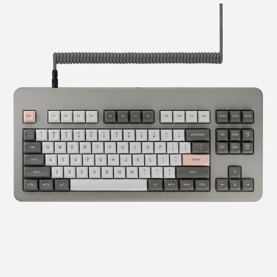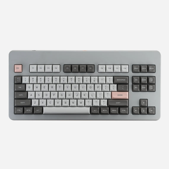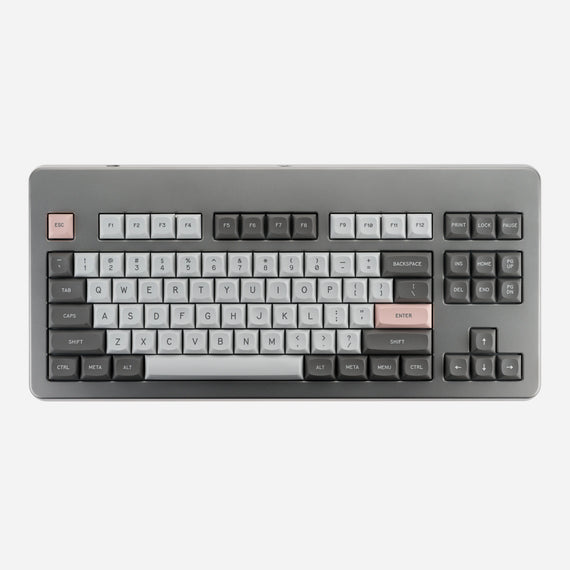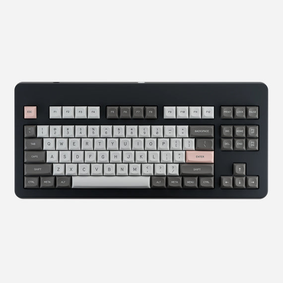 Per client preference, the two pink accent keys can be swapped out to match the rest of the dark gray modifiers for those who prefer a more monochrome look.